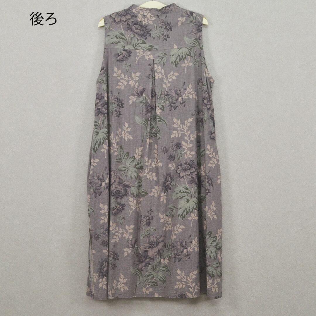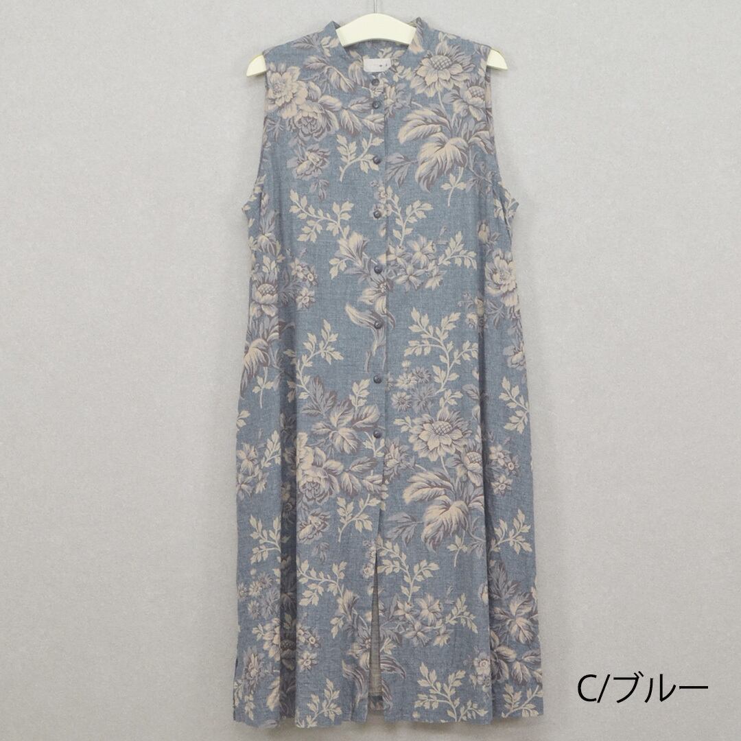 バンドカラー花柄ロングベスト【日本製】(M-373410)