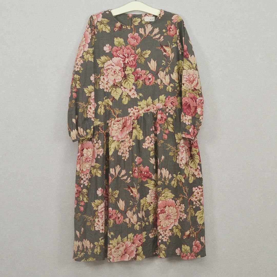 花柄斜め切替ワンピース【日本製】(M-373118)