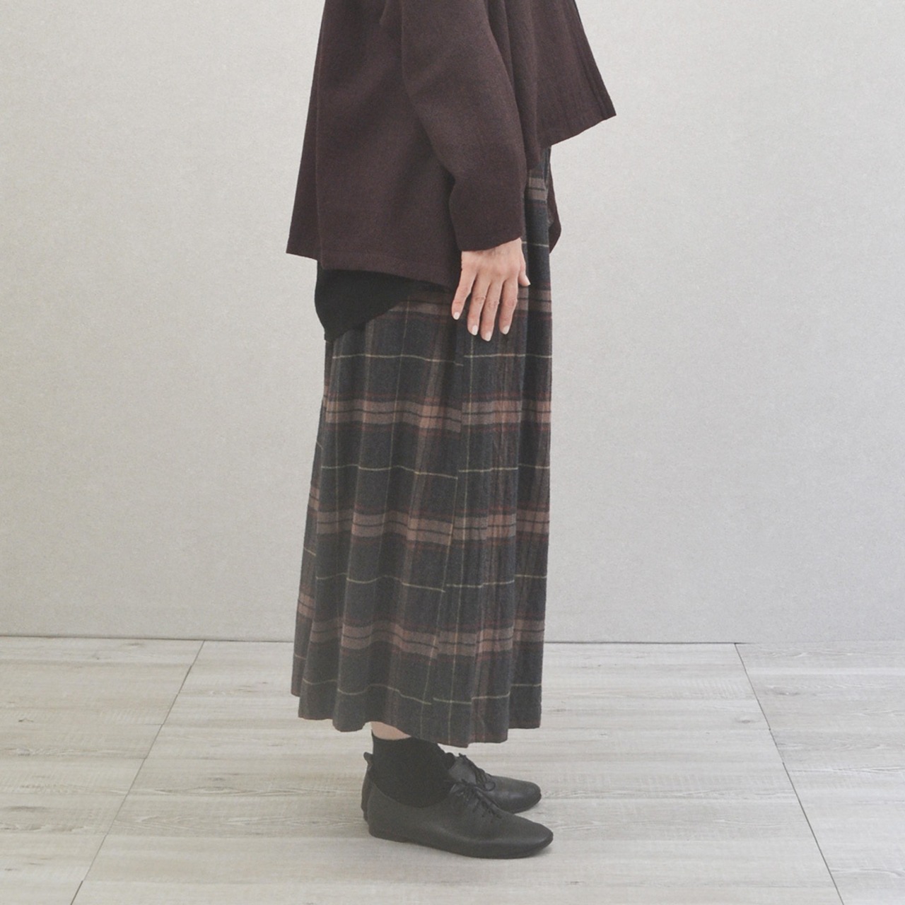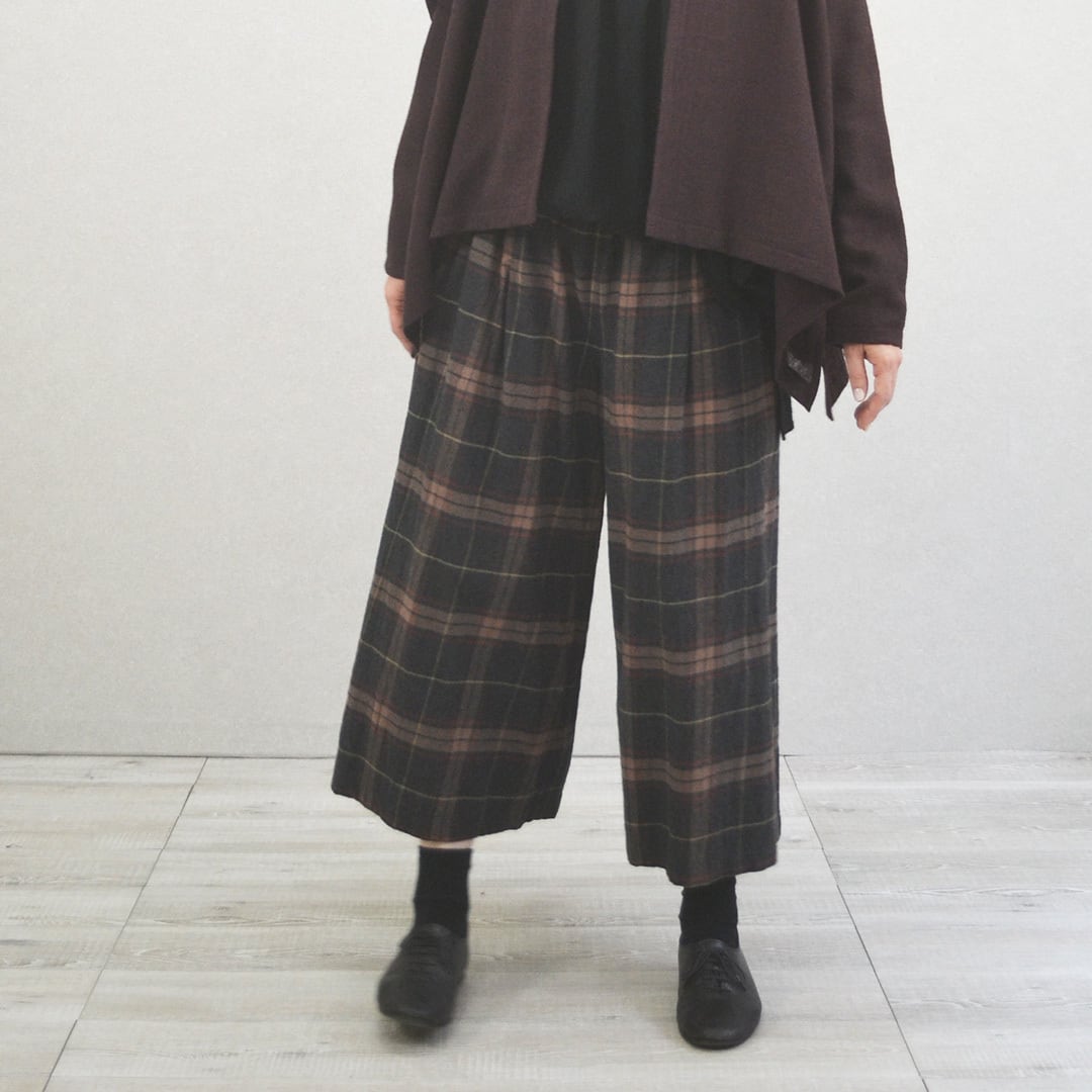 秋冬に活躍するネル生地チェック柄のガウチョパンツです。