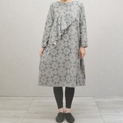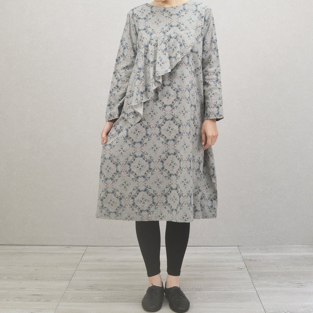 小花柄のネル生地斜め切替フリルワンピース【日本製】(M-373110)