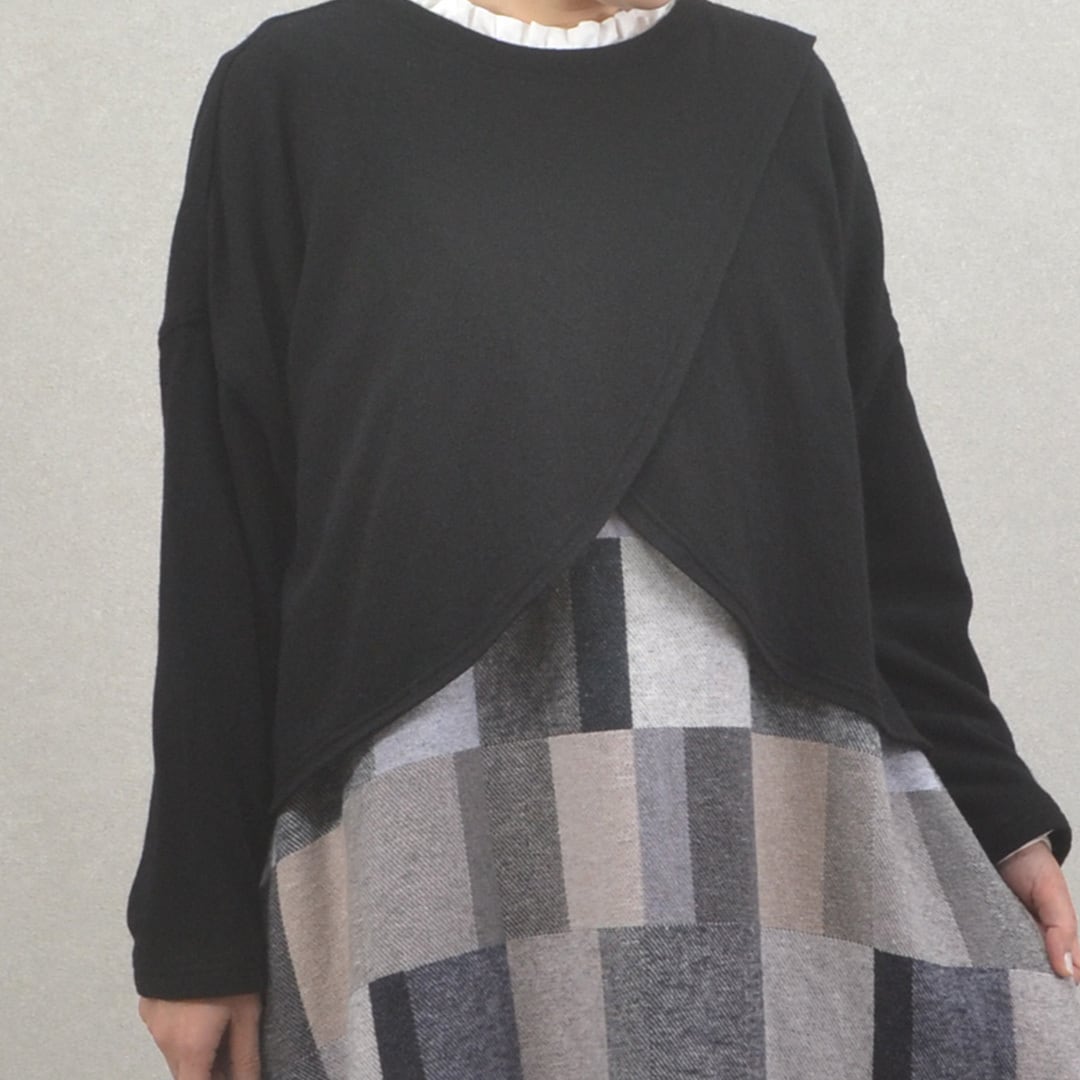 前身頃は右の身頃が左の身頃に重なったデザインです。
