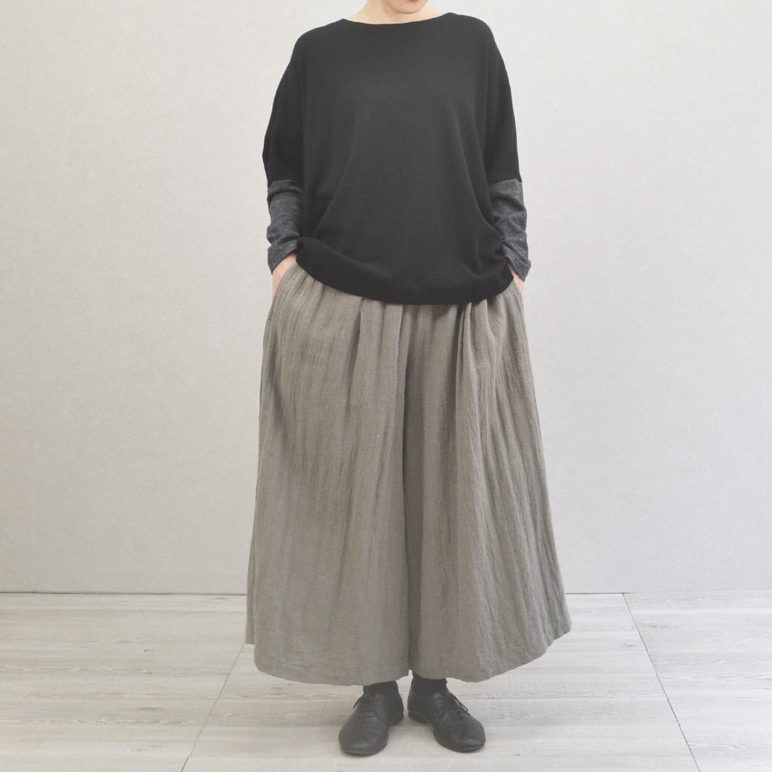 リネン×ウール生地のガウチョパンツ【日本製】(M-373605)