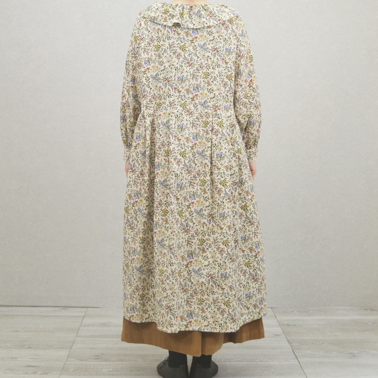 フリル衿が素敵な細コーデュロイ生地のワンピースです。