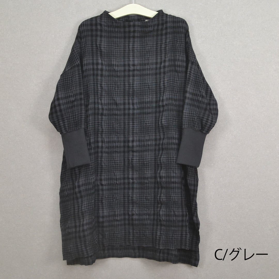 袖口がリブのチュニックワンピース【日本製】(M-374104)