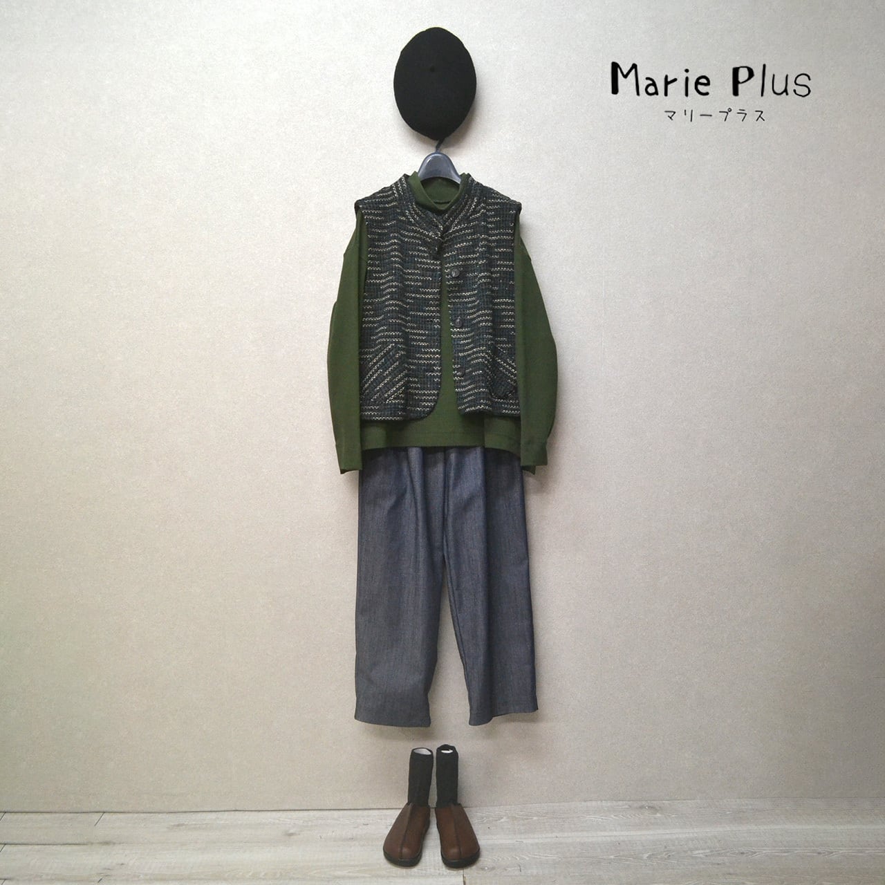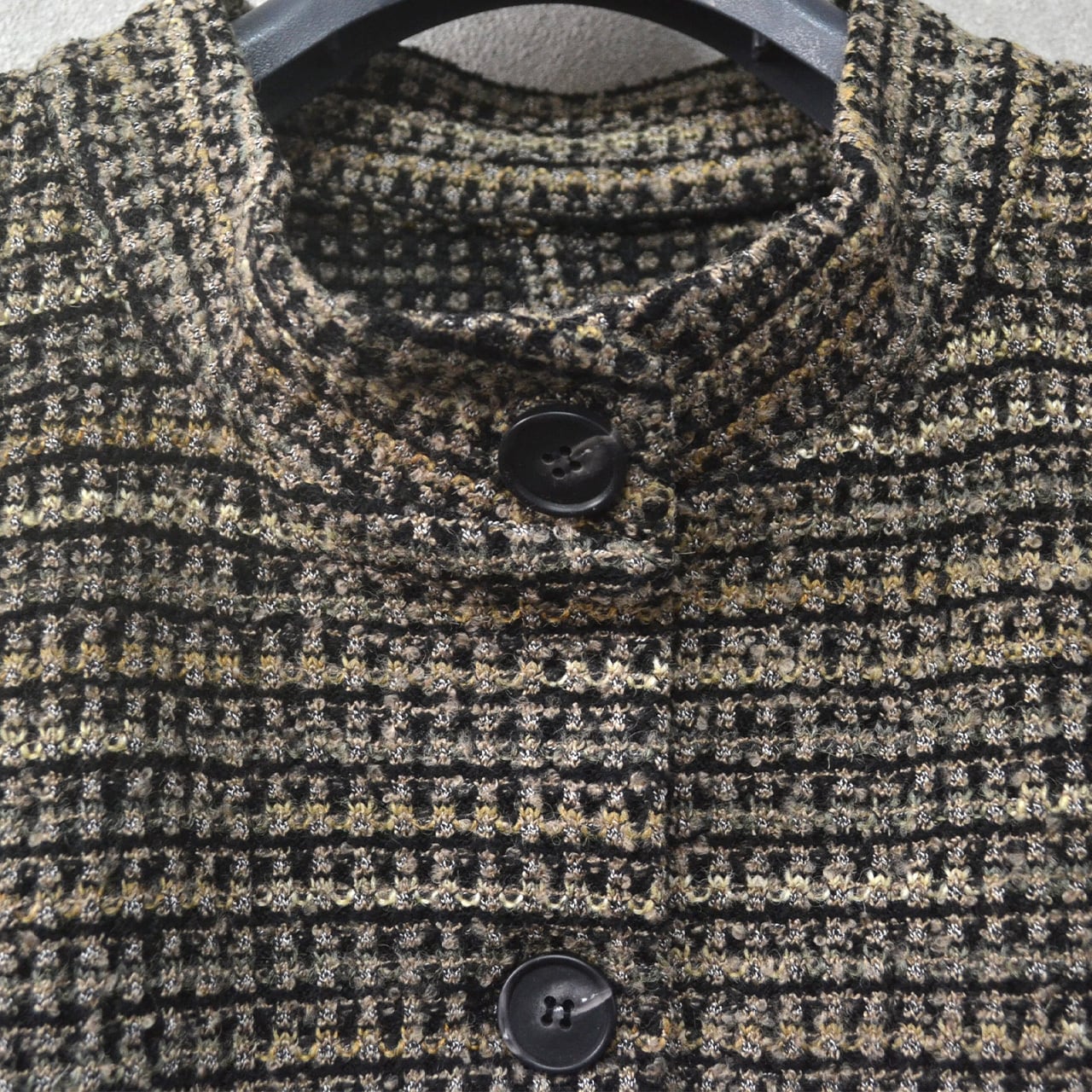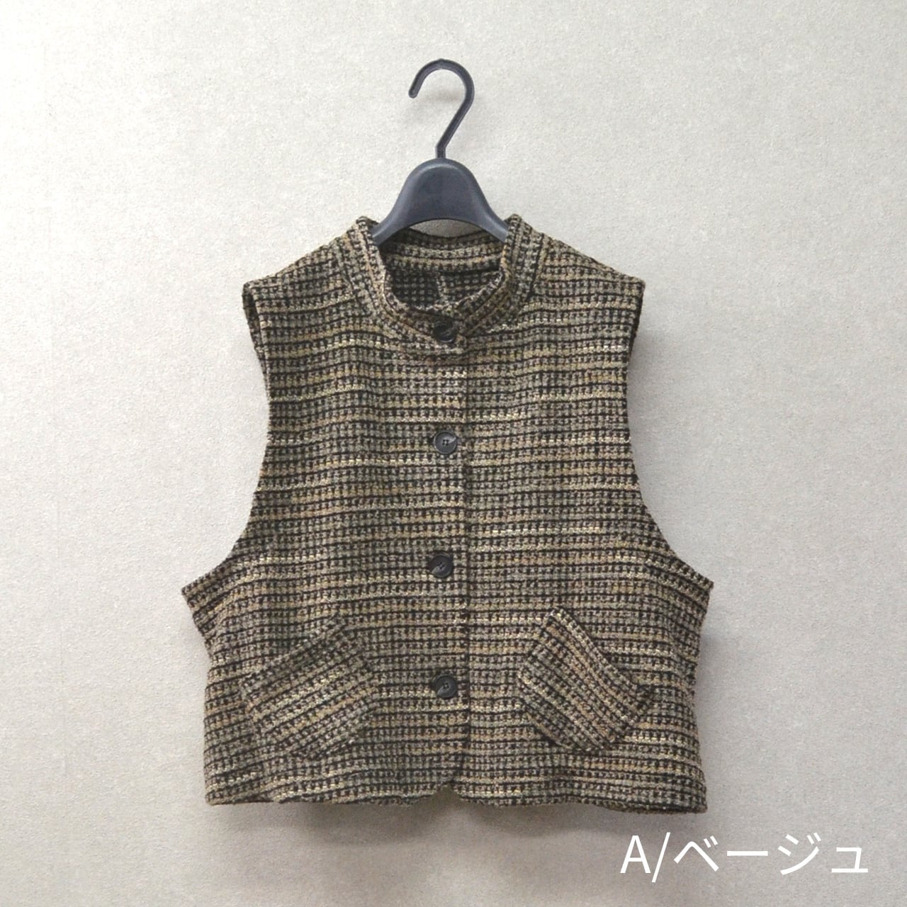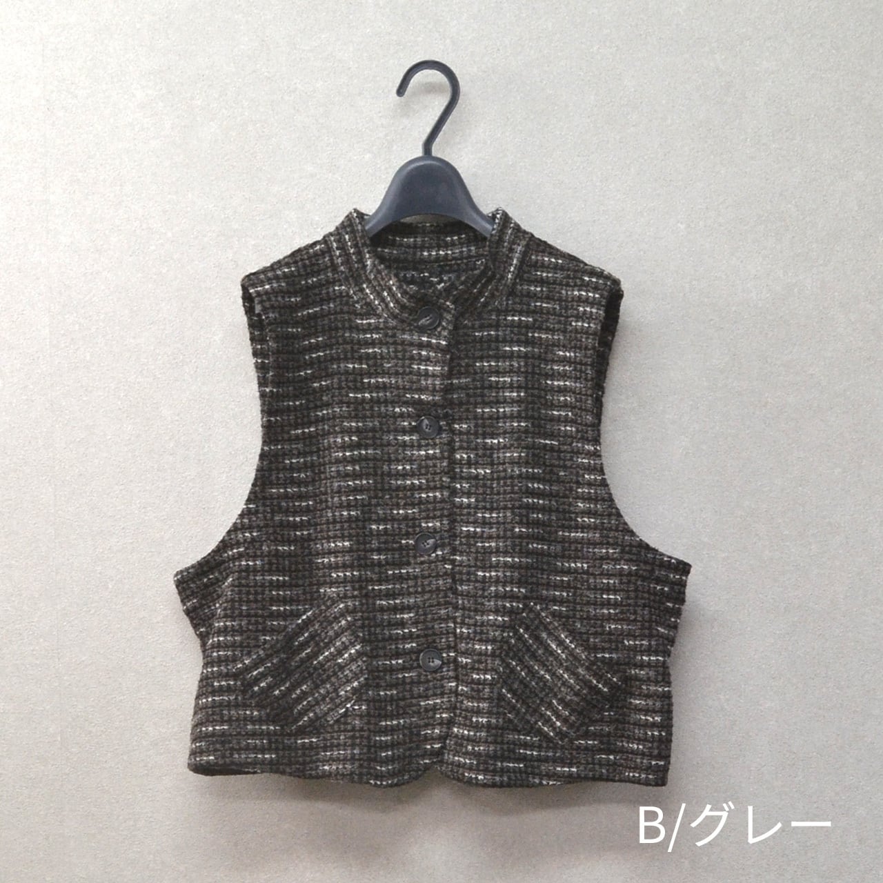 ツイード風ニット生地スタンドカラーベスト(MK-374501)