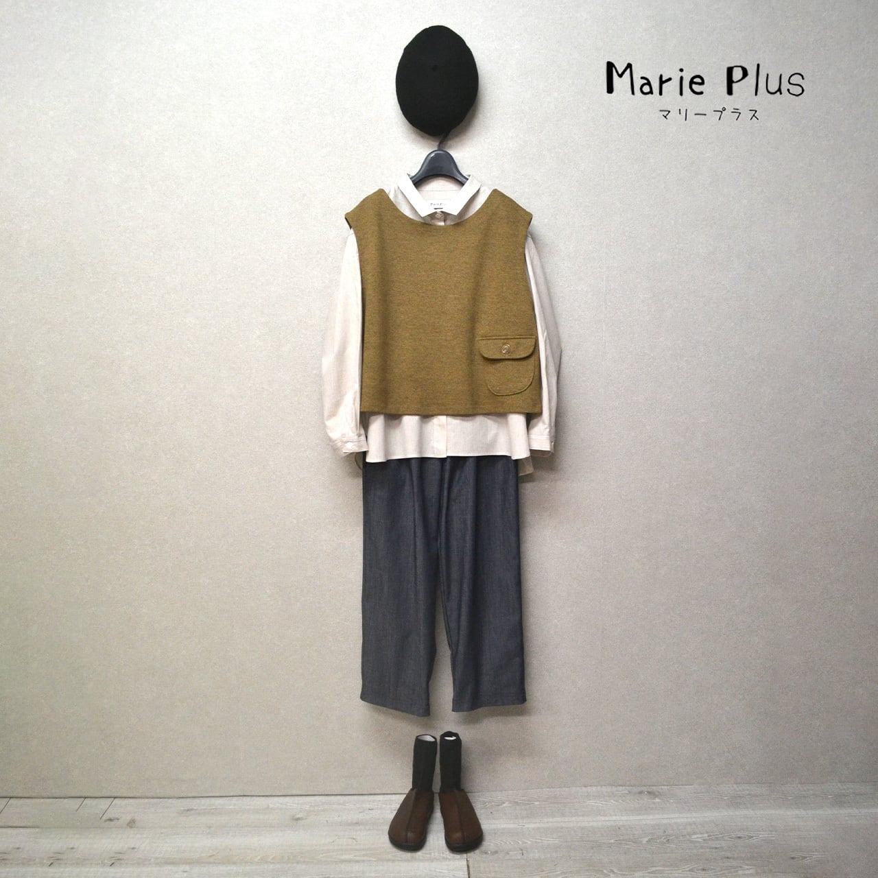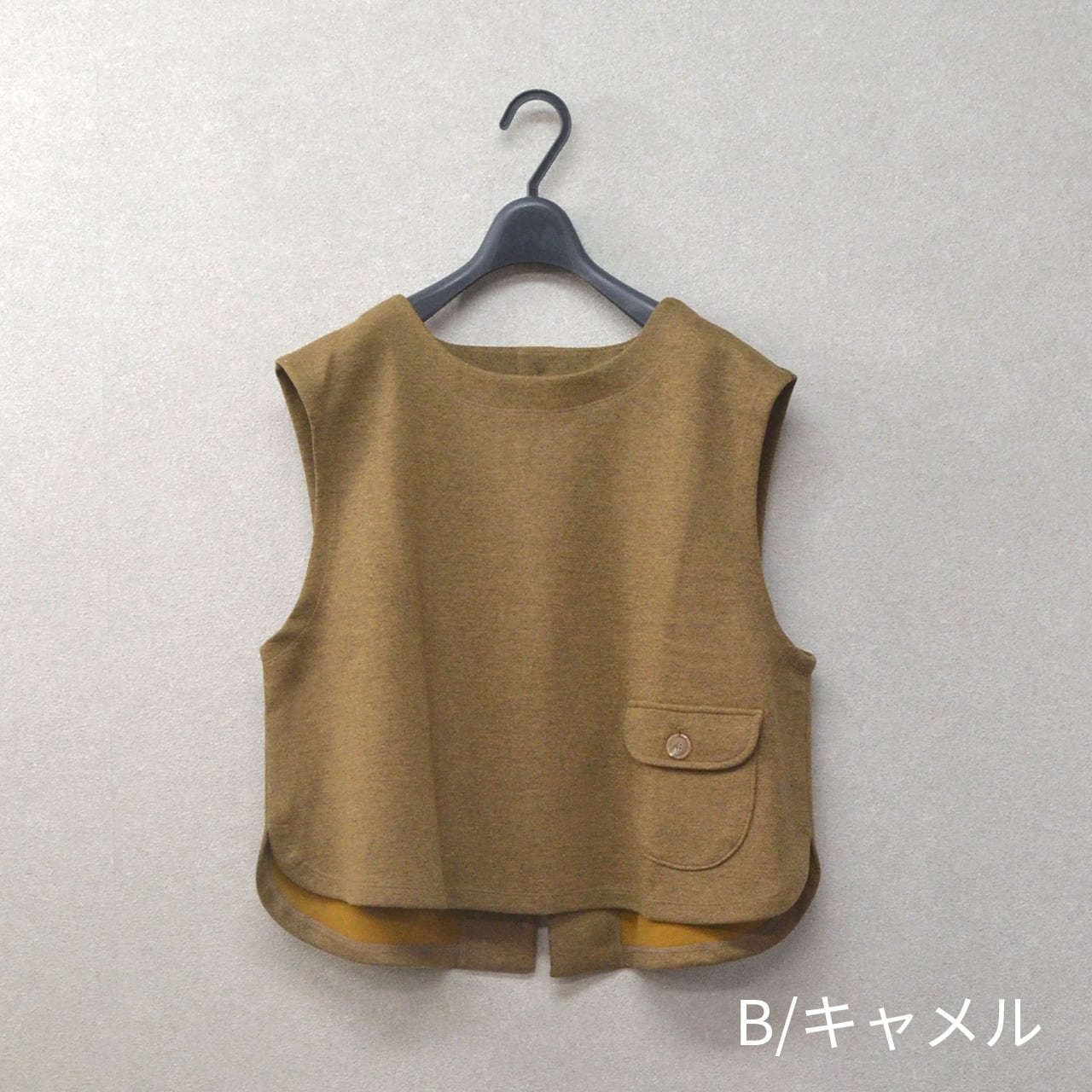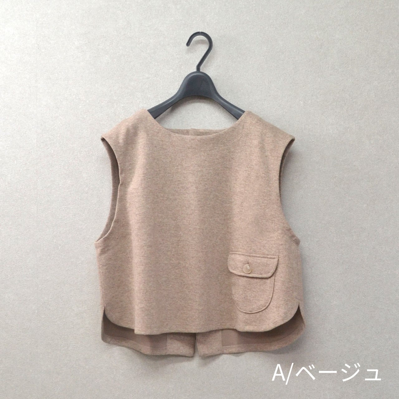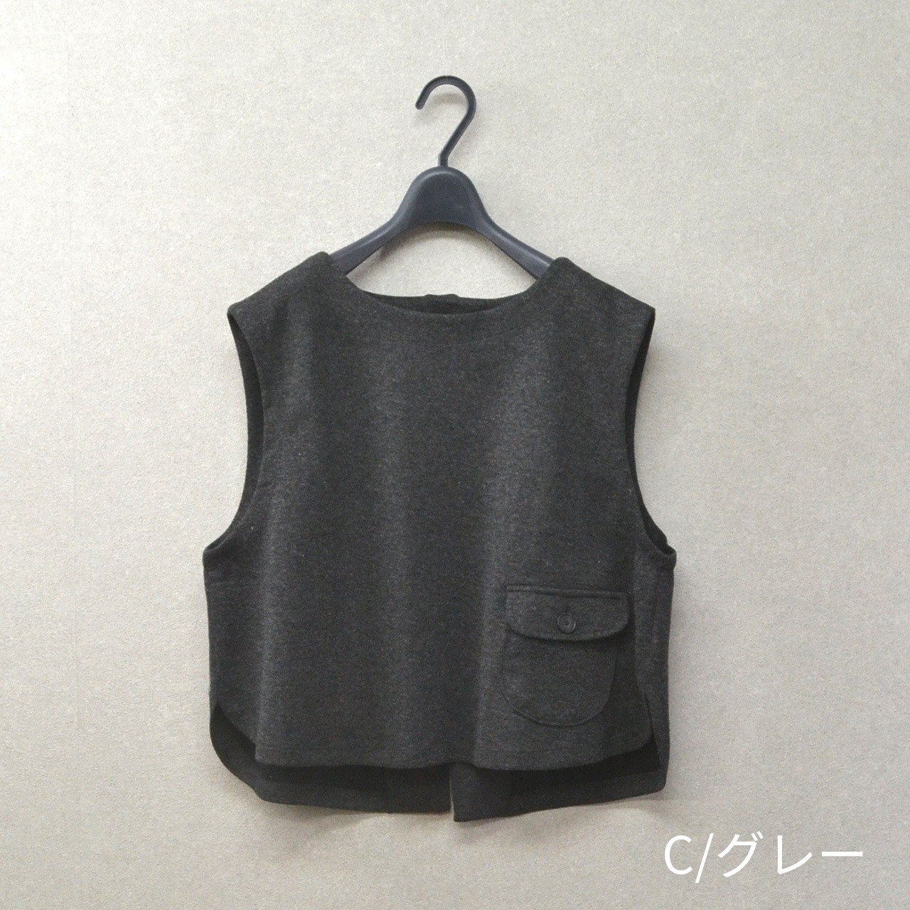 裾のほうにフラップ付きのパッチポケットがついたベストです。