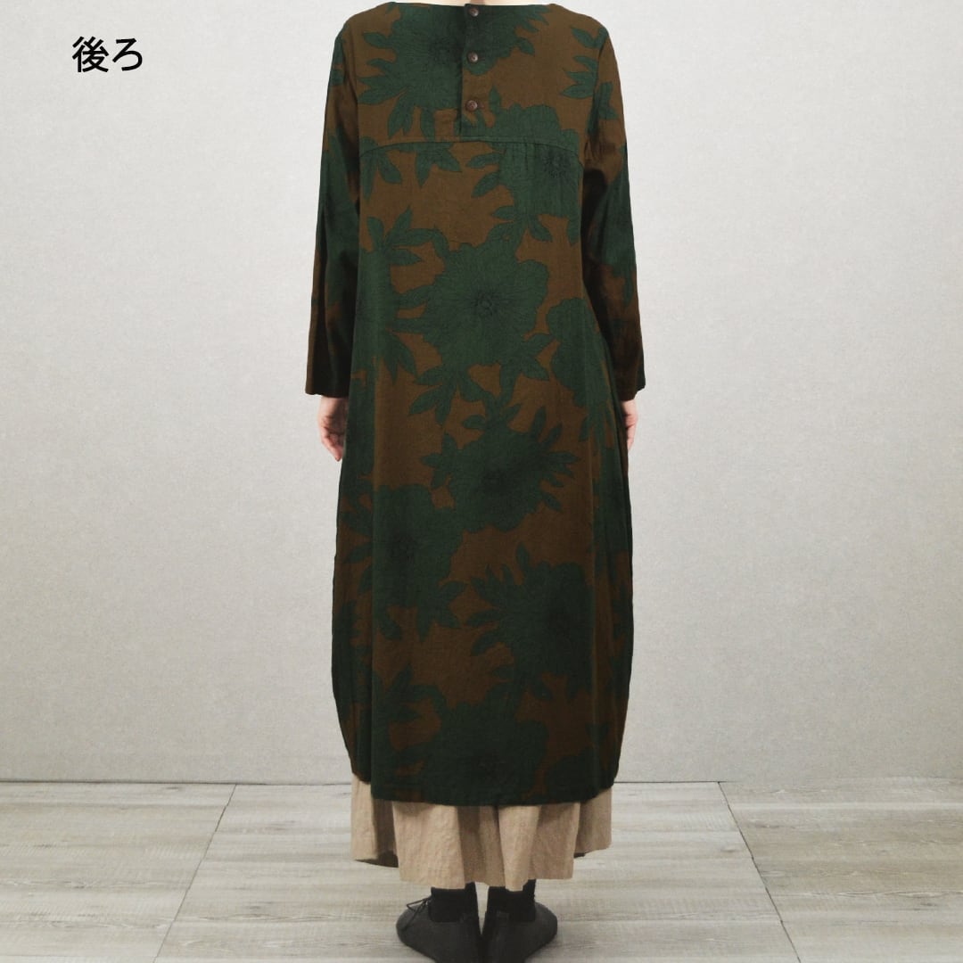コクーン型花柄ワンピース【日本製】(M-381106)