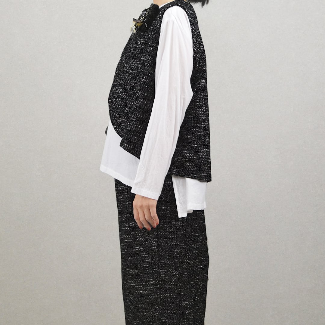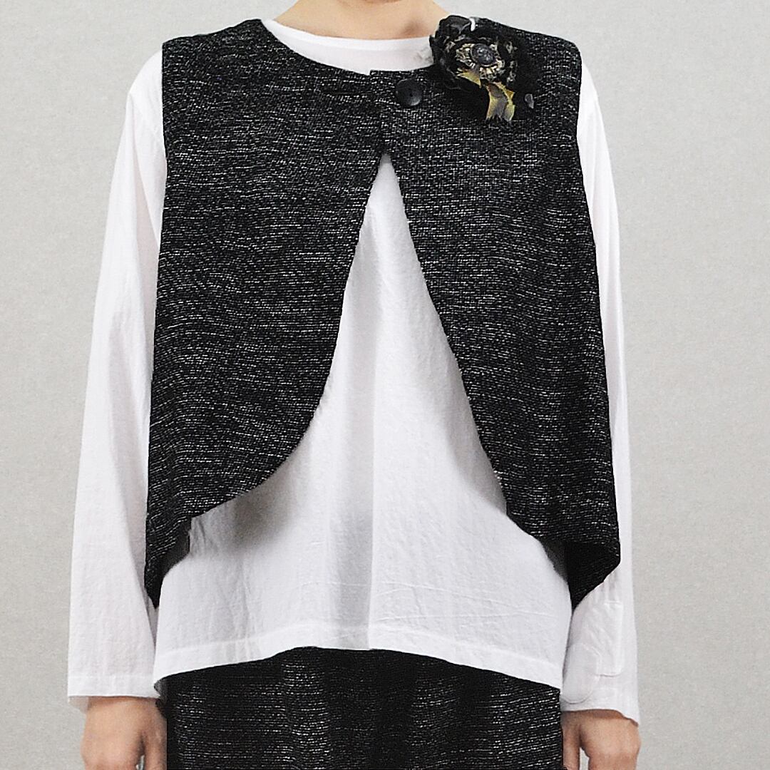 ツイード風うしろ重ねラウンドベスト【日本製】(M-381403)