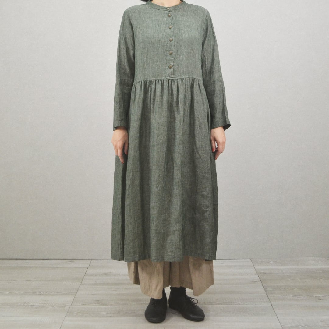 バンドカラーがオシャレなワンピースです。
