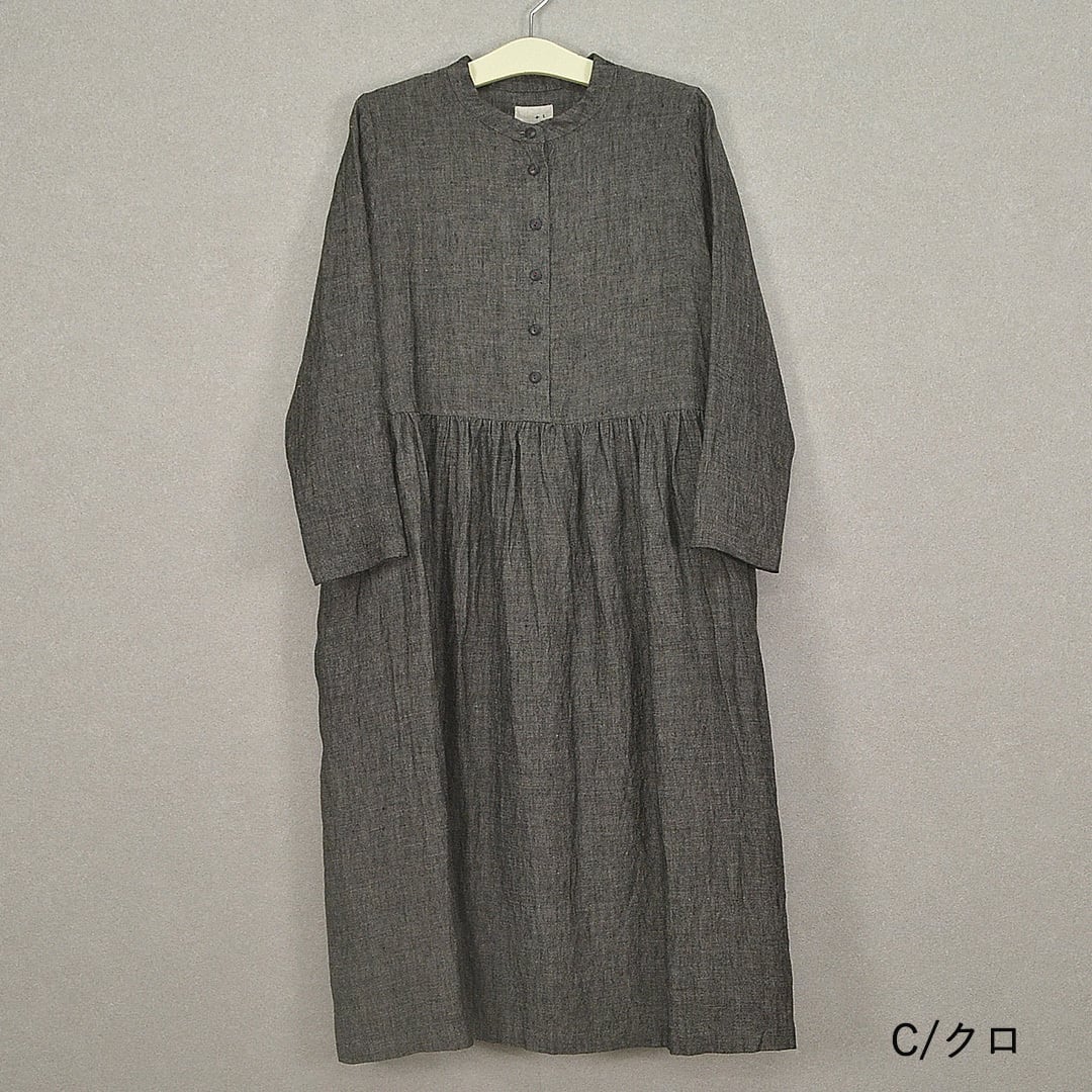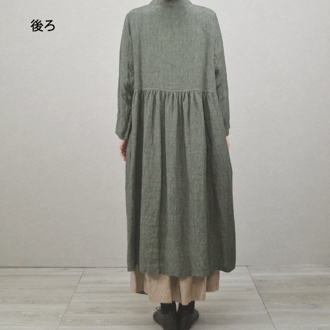 バンドカラーの切替ワンピース【日本製】(M-381110)