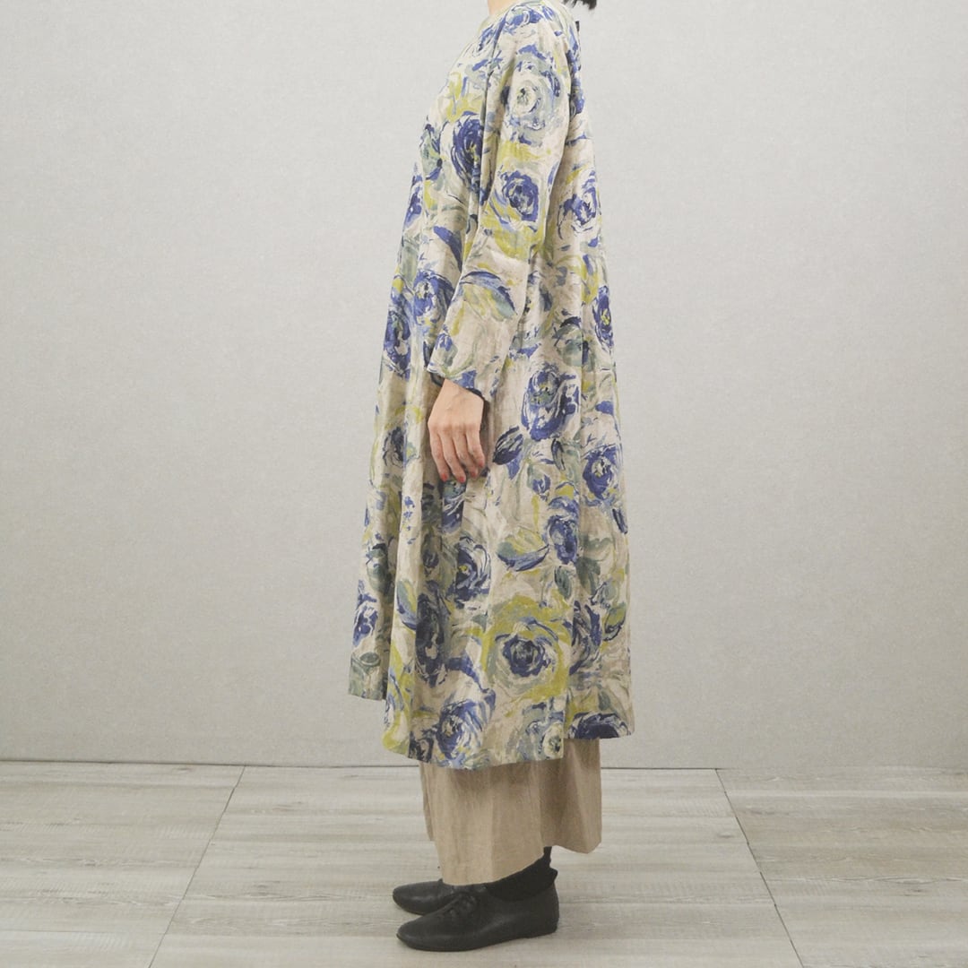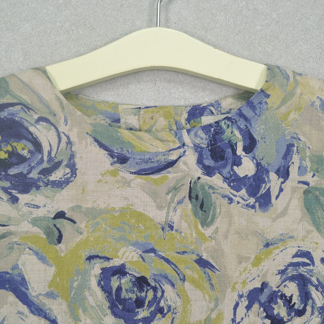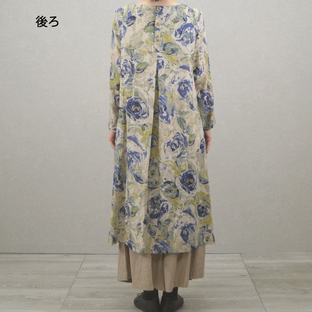 リネン100%のAライン花柄ワンピース【日本製】(M-381109)