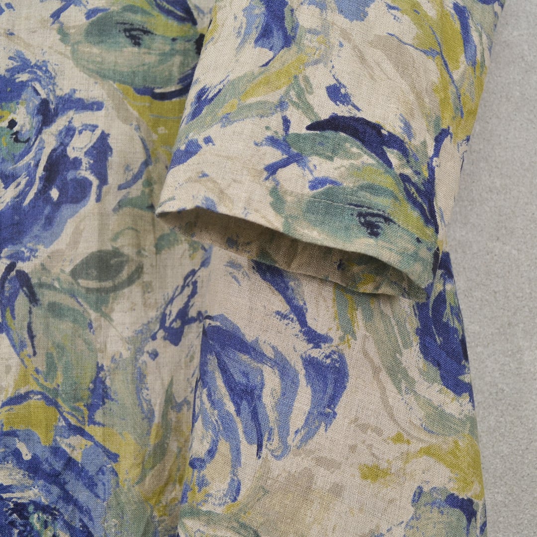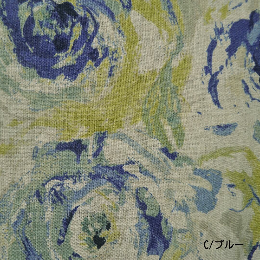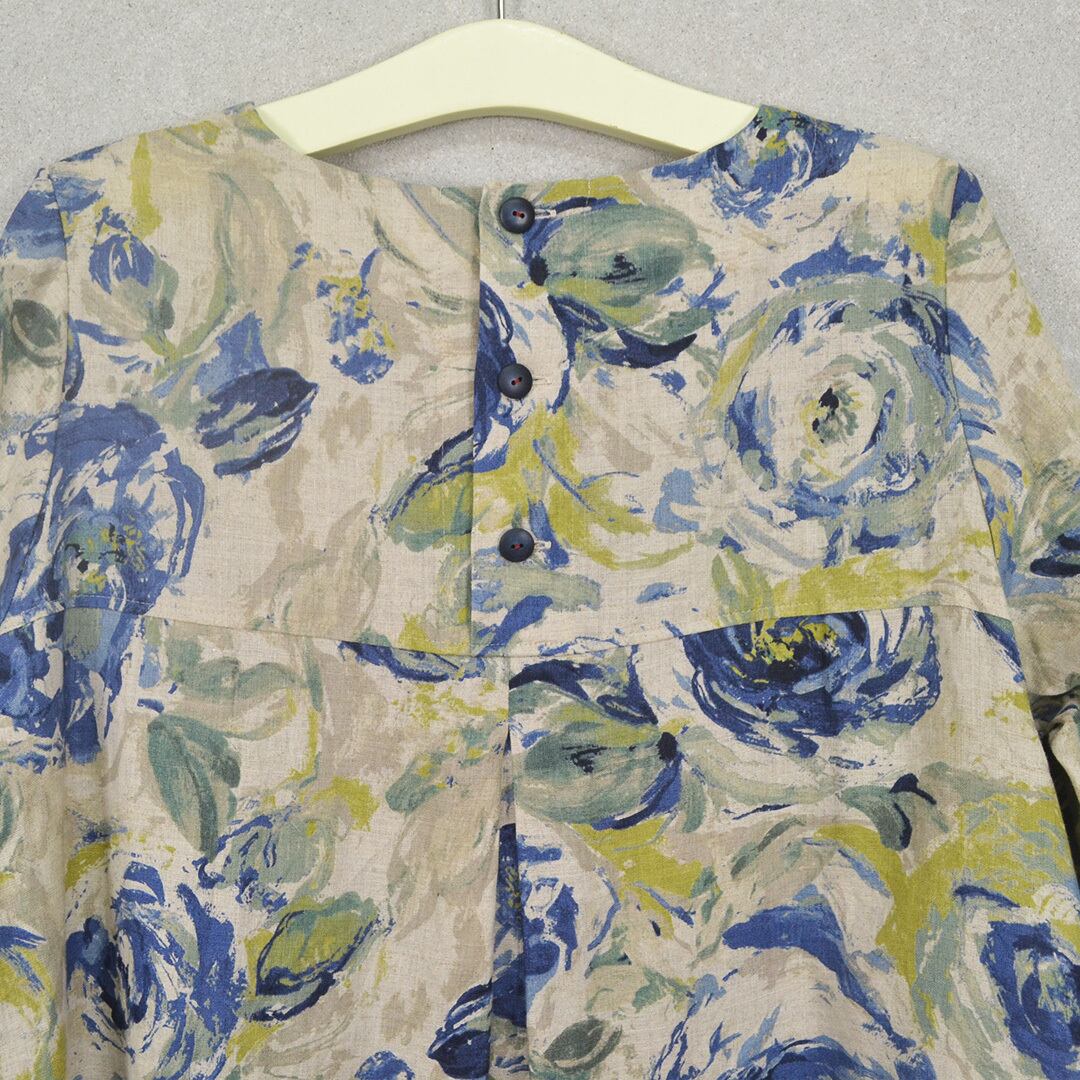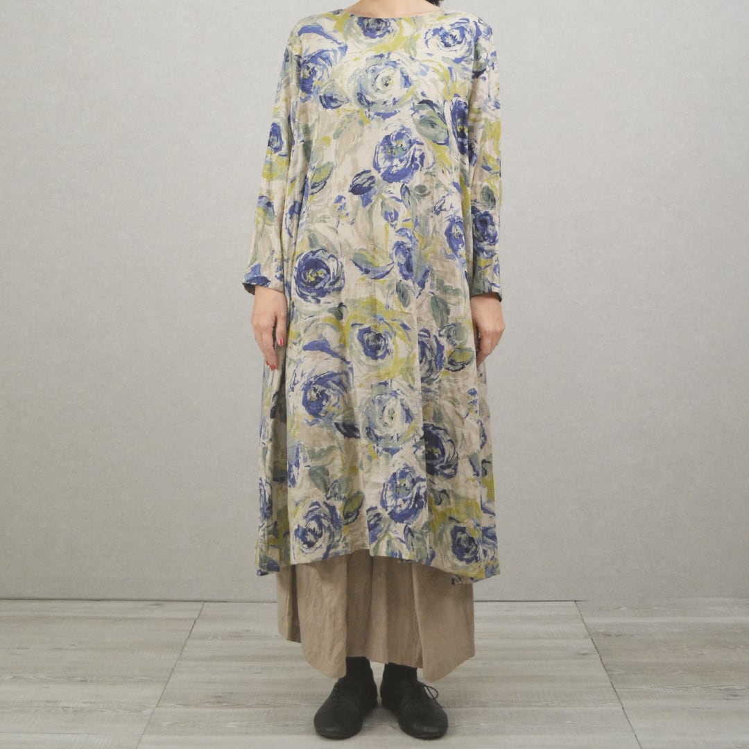 リネン100%のAライン花柄ワンピース【日本製】(M-381109)