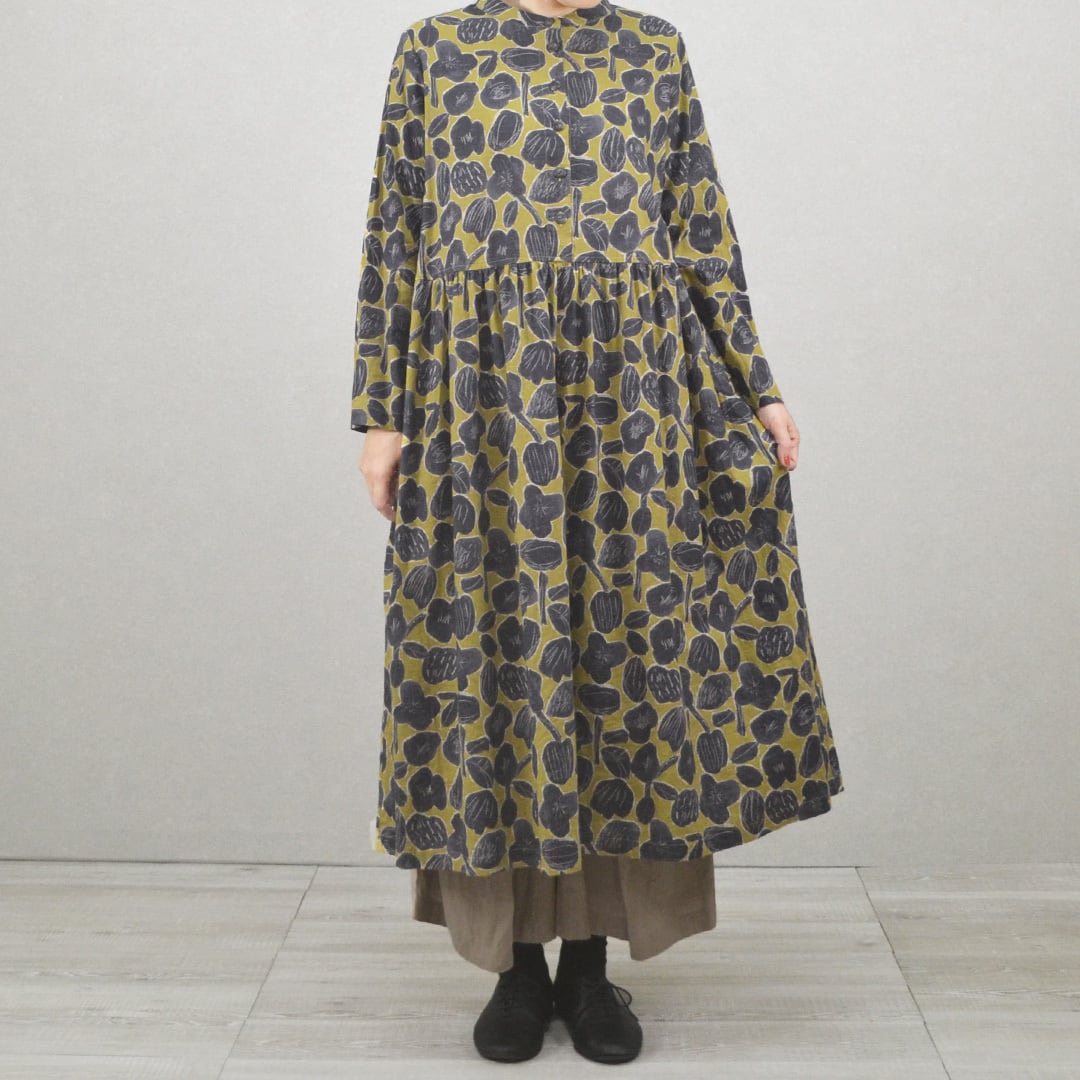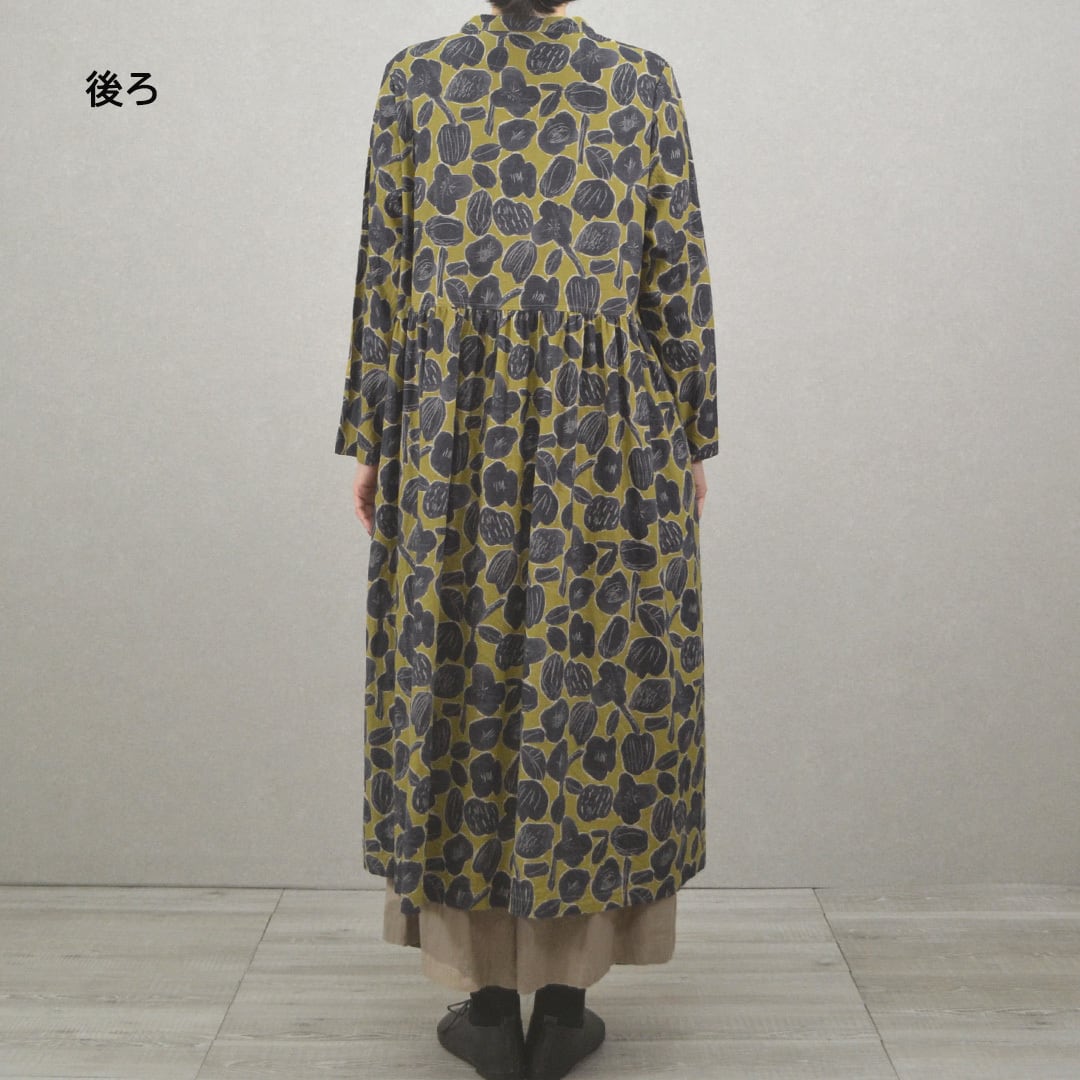 バンドカラーのワンピース【日本製】(M-381107)