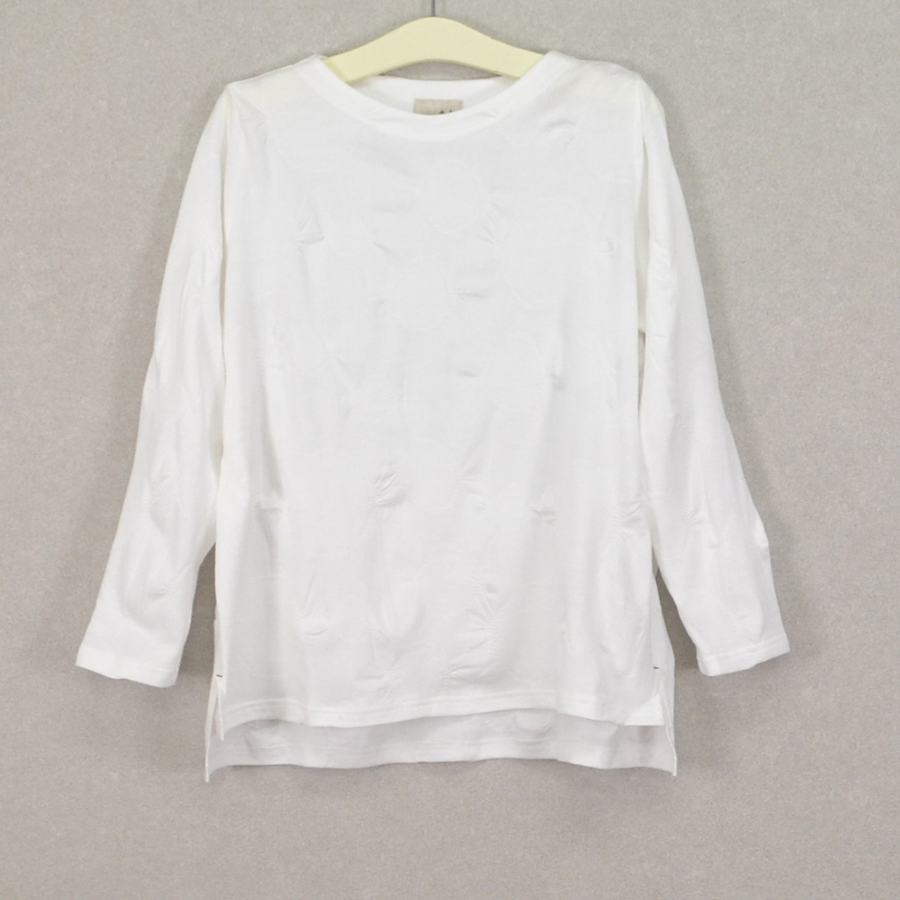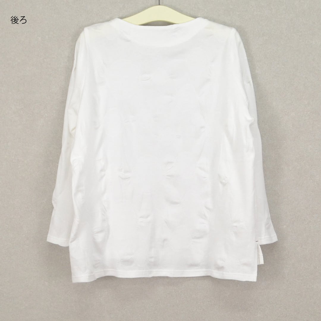 色々な大きさの丸い模様が入ったカットソーは