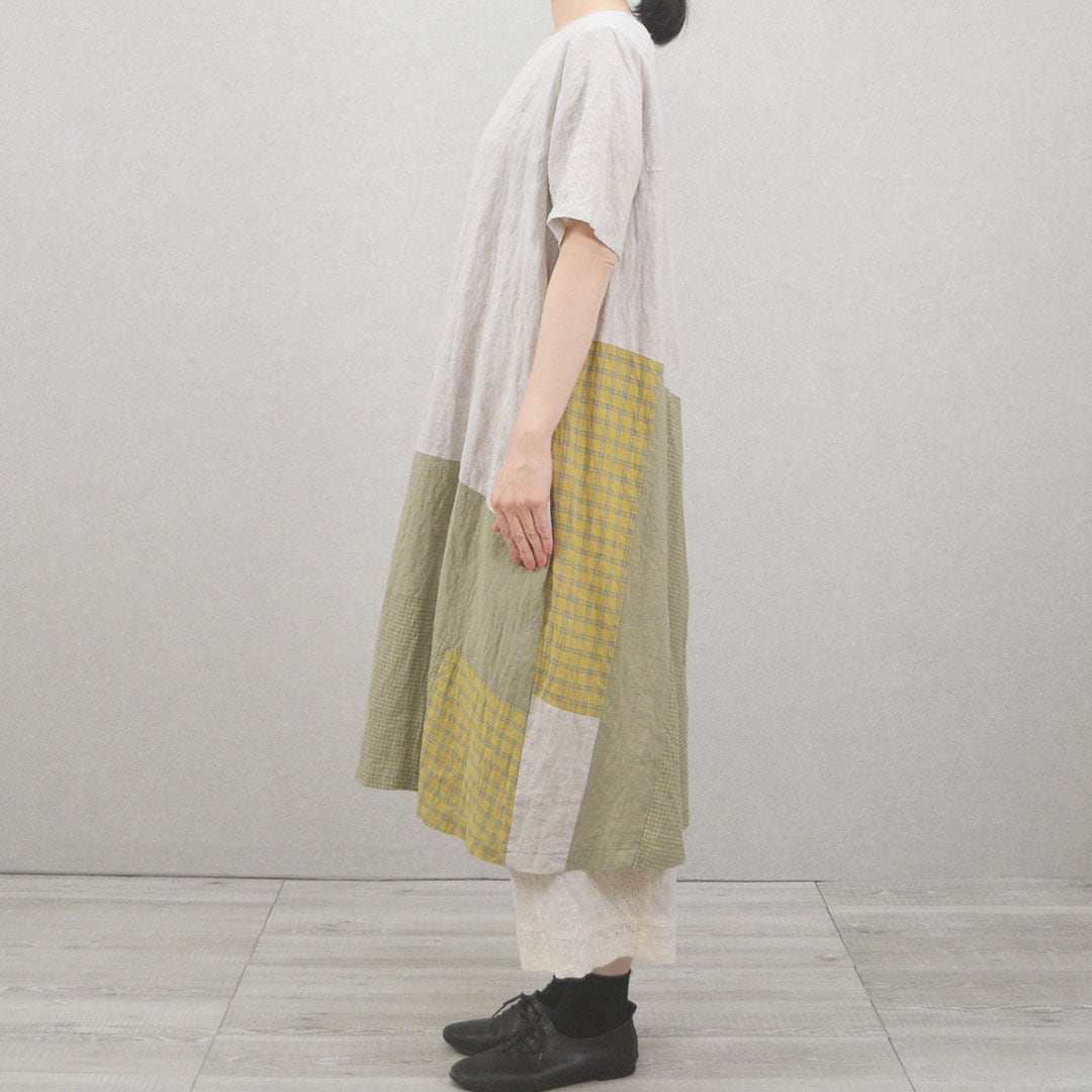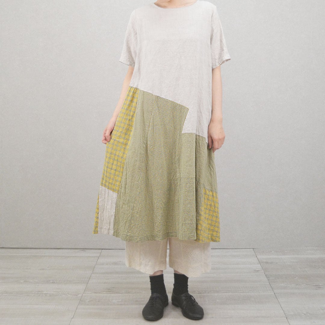 パッチワークが魅力的なワンピースです。